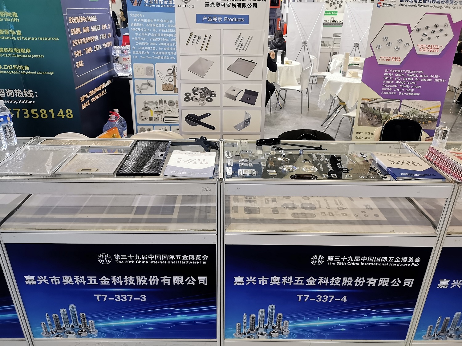Jiaxing Aoke는 전시회 전체에 걸쳐 참석할 예정입니다. 가구 제조, 산업 조립, 기계 장비 등 광범위한 응용 분야에 적합한 정밀 제조 공정, 우수한 내식성 및 고강도를 특징으로 하는 고품질 스탬핑 부품 ​​및 패스너를 선보입니다.